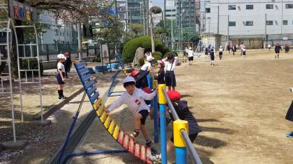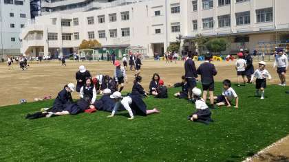 人工芝や天小広場でくつろいでいます。ぽかぽか陽気で気持ちがよさそうです。