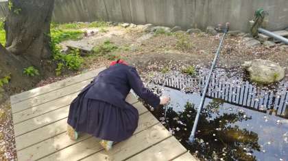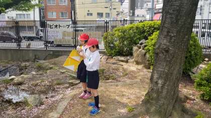 4年生の理科の様子です。春の気温や水温を測定しています。