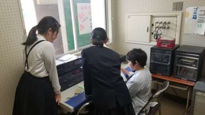 放送委員・給食委員の活動の様子です。給食委員が本日の給食について説明しています。