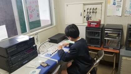 放送委員の活動の様子です。50分からの放送で準備をしています。