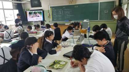 6年生の授業の様子です。1組は社会科、2組は理科の授業でした。どちらのクラスもしっかり調べて考え、自分の考えや意見を発表できていました。