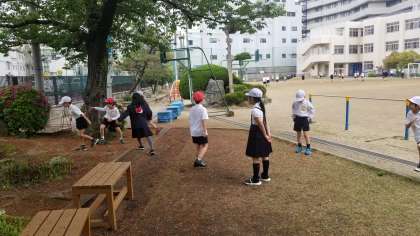 朝の様子です。天小広場のビオトープ付近で遊んでいます。