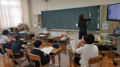 なかよしの授業の様子です。デジタル教科書を使って学習しています。