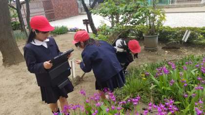 4年1組の授業の様子です。季節が移り変わるなか、植物の変化を観察しています。