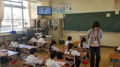1年生の授業の様子です。しっかりと先生の話を聴くことができています。