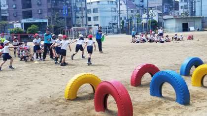 4年生の体育の様子です。リレー競技の練習です。