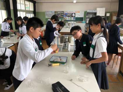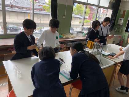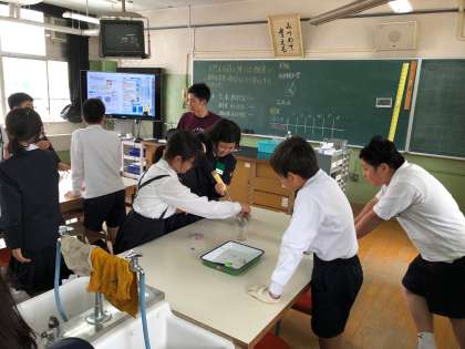 6年2組の理科の様子です。ものが燃えるときの空気の変化を実験しています。