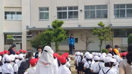 体育朝会後、児童会の連絡がありました。