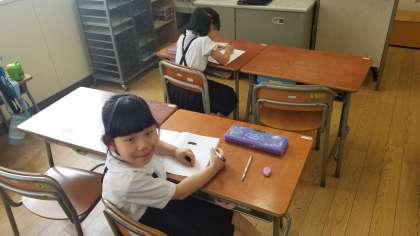 2年生の教室の様子です。図書係の児童が作業をしていました。とても楽しそうです。