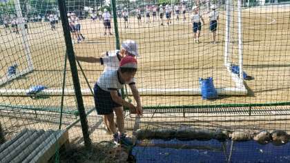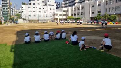 今日は体育朝会があるので、みんな体操服に着替えて運動場で遊んでいます。