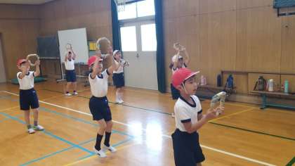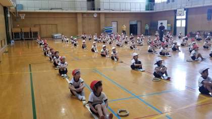 1・2年生が体育館で運動会の練習をしています。しっかりと先生の話を聴くことができていました。1年生は初めての運動会ですが、しっかりと練習できています。
