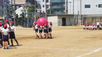 合同で練習をした後、学年にわかれて団体競技の練習をしました。