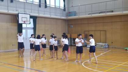 6年生は体育館でリレーの順番を決めて、先生に報告していました。