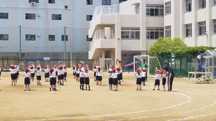 1・2年生が運動場で運動会の練習をしました。場所の確認などやることがいっぱいです。たいへんですが頑張って。