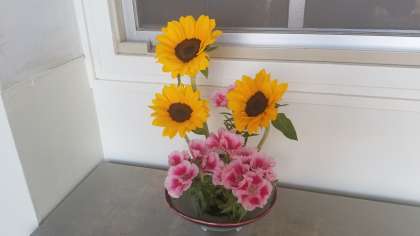 地域の方が、きれいな花を活けてくださいました。いつもありがとうございます。
