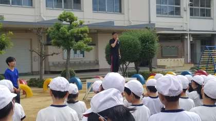 校長先生より、サッカークラブの表彰を行いました。次に児童会より運動会のめあてについてお話がありました。最後に吉田先生より週目標についてお話がありました。週目標は「元気よくあいさつをしよう」です。