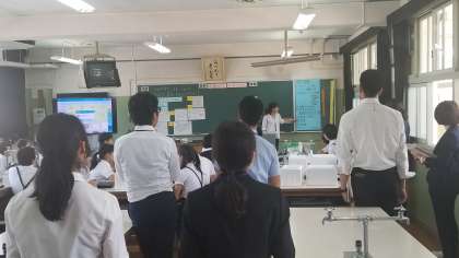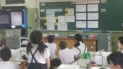 市内の新規採用の先生が、本校のICTを活用した理科の授業を見て研修しました。写真は6年1組の様子です。