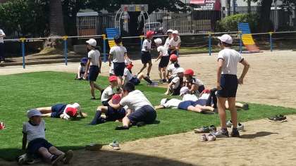 2年生の廊下では、自主的に運動会の練習をする児童の姿が見られました。