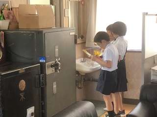 今日も、運動会の練習、頑張っています(1・2年生)。算数の学習、小数の計算です(5年)。社会の学習で、校内の水道蛇口調べをしてます(4年)。