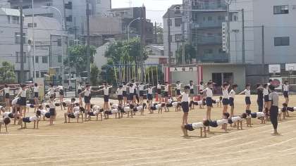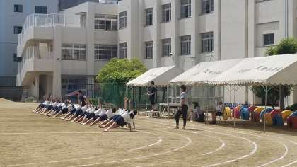 5・6年生の団体演技の練習の様子です。最後の仕上げの練習です。児童も先生も一生懸命です。