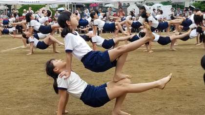 5・6年の団体演技、「組体操・南中ソーラン〜和〜」です。