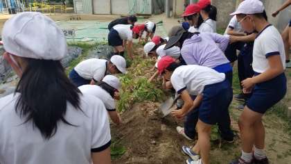 6年生が6時間目、じゃがいもの収穫を行いました。
