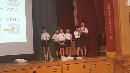 保健委員の児童が歯みがきやうがいなどをわかりやすく説明してくれました。最後に集会についてたくさんの児童が意見を発表してくれました。