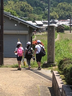 班で協力して、遺跡や春の田園地帯を楽しくオリエンテーリングしています。