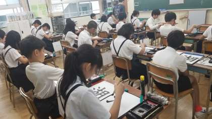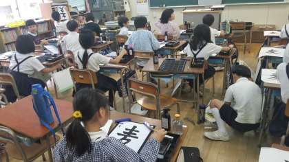 6年2組と4年1組の書写の学習の様子です。姿勢・筆の持ち方・筆順などを意識して、丁寧に書くことができていました。4年生はマイスモッグを着ている児童がいました。