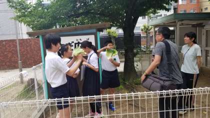 (写真は美化委員会と飼育委員会の撮影の様子です。)