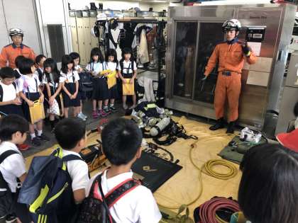 昨日の4年生の社会見学の様子です。天王寺消防署で学習しました。