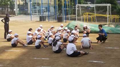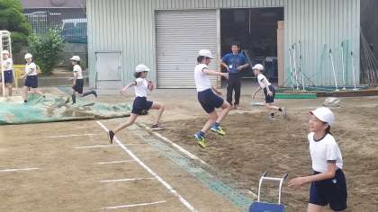 6年2組の体育の様子です。走り幅跳びの様子です。