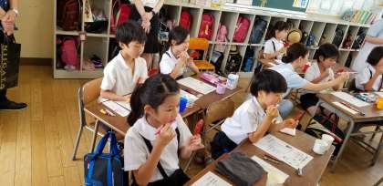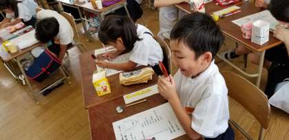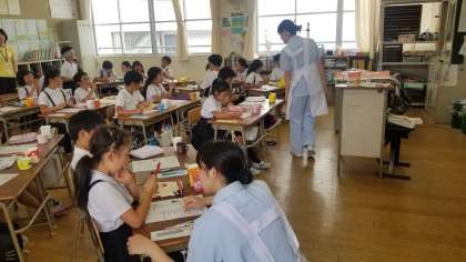 本校学校歯科医の西本先生と大阪府歯科医師会附属歯科衛生士専門学校の先生と学生の皆さんによる指導がありました。歯のみがき方について丁寧に指導してもらいました。