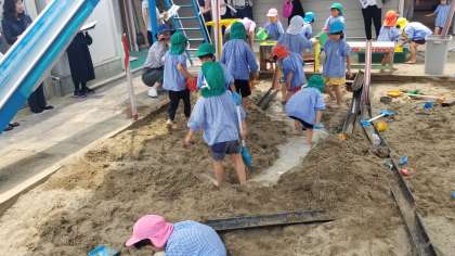 先生だけではなく、子どもたちが一緒に考えた遊びもたくさんあったのではないでしょうか。本当に子どもたちが楽しそうで、笑顔がとても素敵でした。