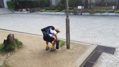 3年男子児童がウサギ小屋の前に落ちていたゴミを拾ってくれました。
