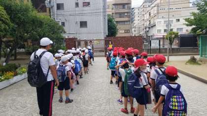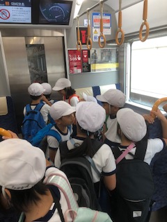 今日は2年生の遠足です。予定どおり、学校を出発しました。百舌鳥駅について大仙公園に向かいます。