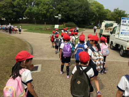 大仙公園に到着しました。1組・2組に分かれて活動開始です。