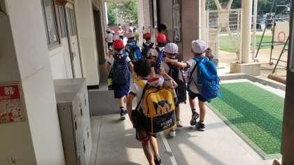 2年生が遠足から帰ってきました。2時40分下校しました。