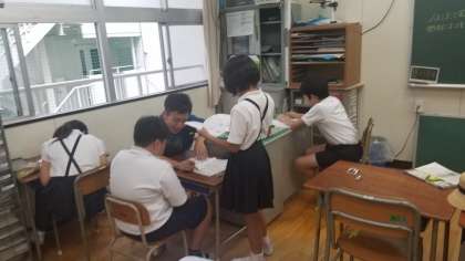 6年生の放課後の様子です。学習をしたり、天フェスの準備をしたりしています。