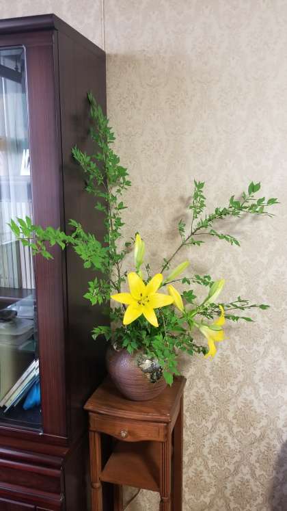 昨日、地域の方がきれいな花を活けてくださいました。黄色い百合が見事に咲き、朝から幸せな気分です。いつもありがとうございます。