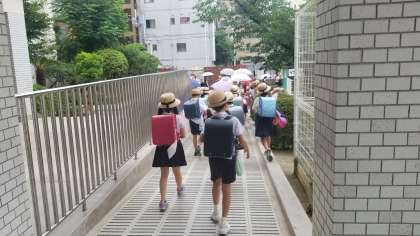 今日は地域別子ども会が行われ、集団で下校しました。担当教員と一緒に下校しています。明日も元気に登校しましょう。