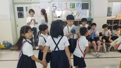 縦割り班で行動します。5・6年がリーダーとなりお店を回ります。