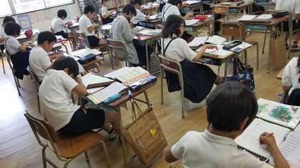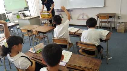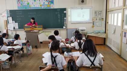 4年生の算数の様子です。習熟度でそろばんの学習をしています。演習問題をどんどんしている児童もいました。