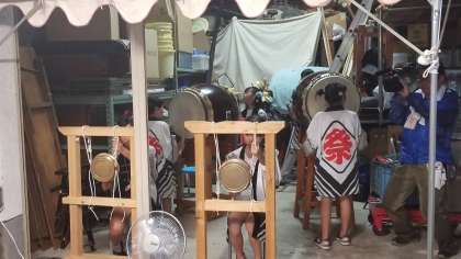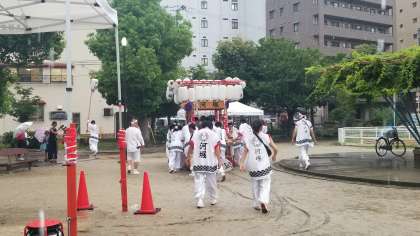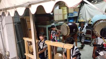雨の中、河堀稲生神社の夏祭りがあり、子どもたちが太鼓を披露してくれました。