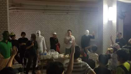 楽しかった「かぶ天サマー」も終了です。最後は体育館前に集合して、実行委員会とお化けたちからお話がありました。