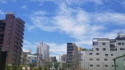 朝の様子です。今日も暑い日がになりそうですが、空の雲は秋のようです。早く秋にならないかなと思うほど暑い日が続いています。規則正しい生活と十分な水分補給を心がけましょう。