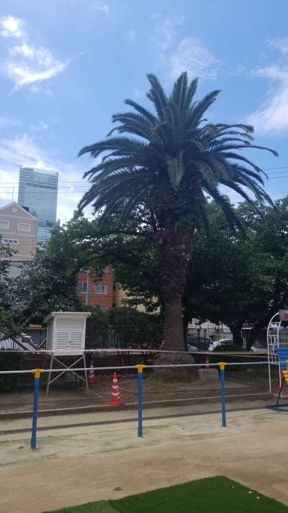 天小広場にあるフェニックスの木です。昭和40年3月の卒業記念樹として植えられ、50年以上天小の子どもたちに親しまれてきました。しかし、最近古くなった部分がはがれ落ち、危険なのでテープで囲い近づかないように指導しています。まだ、古い部分が残っており、いつはがれ落ちるかわかりません。子どもたちの安全を考えると伐採することも考えなくてはなりません。