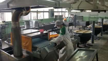 2学期の給食開始に向けて、給食室で厨房の清掃や給食機材の点検が行われています。