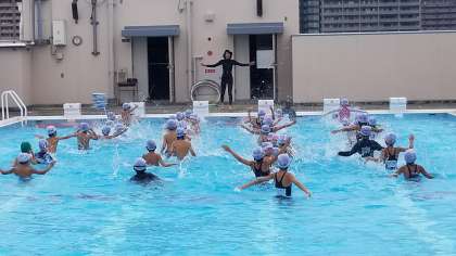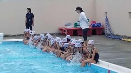 2年生のプール指導の様子です。きれいな水で「気持ちいい」という声が聞こえてきました。