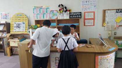 図書館開放の様子です。一人一人違うスタイルで本に親しんでいました。